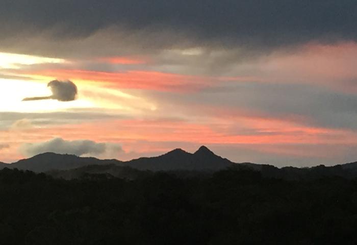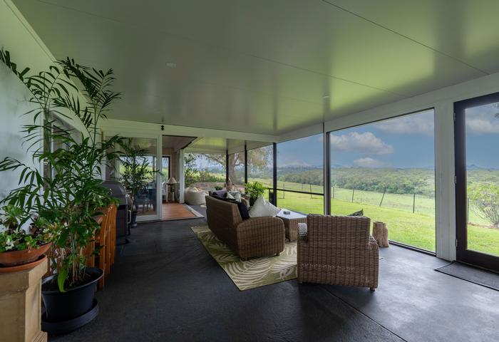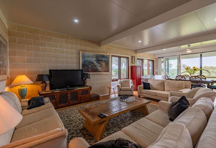 This property has stunning 360 degree views of Mt. Warning and Mt. Chincogan across the adjoining lush bush reserve so the magnificent uninterrupted view of this private retreat can never be built out. The perfect north facing aspect bathes the home in glowing pink light at sunrise and finishes the day with dramatic reds and oranges of the setting sun.