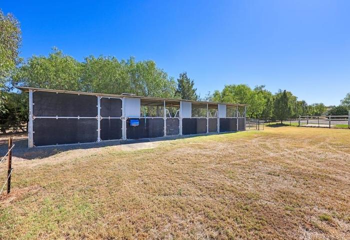 Additional property features include a 60m x 20m professionally built horse arena made with 150mm of compacted road base and proper drainage. Surrounded with a cement sleeper edge, it’s ready for the sand of your choice or can serve as the perfect base to build the shed of your dreams. There are three horse stables on a permanent base with water troughs plus an attached feed room. Water misting system on a timer for cooling your horses on warmer days. A solar system on the stable roof provides 12-volt power for lighting and the electric fence unit. Cement horse wash bay with water.