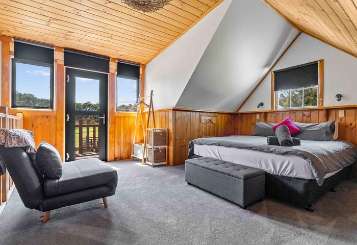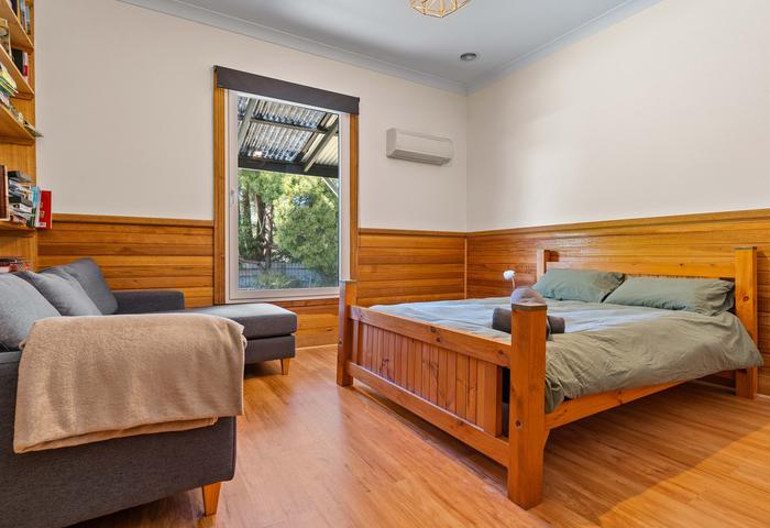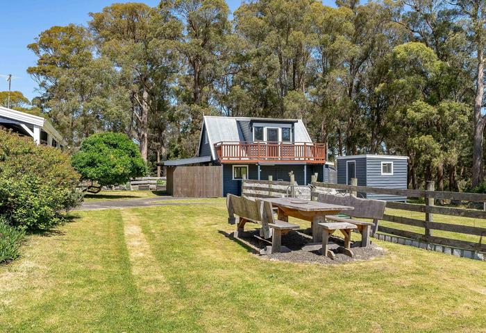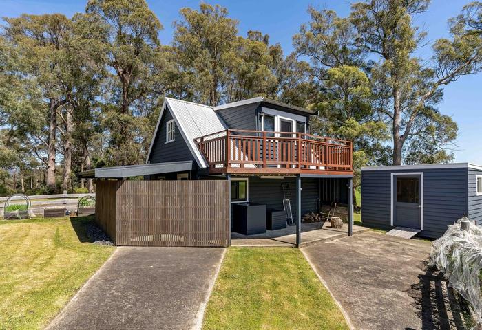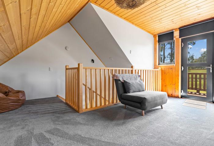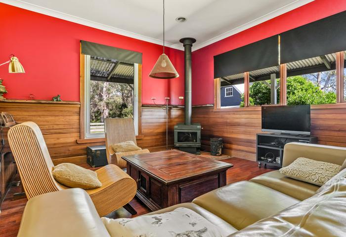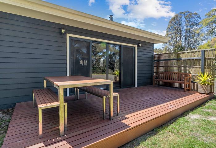 The separate cottage — a proven Airbnb success — adds further appeal. A stylish open-plan kitchen and living/dining area flow seamlessly to a sunny deck, perfect for relaxing or entertaining. Two inviting bedrooms are served by a sleek contemporary bathroom, including an upstairs retreat with its own private deck overlooking the treetops.