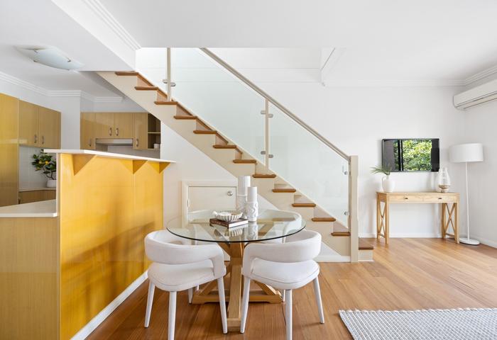 - Timber floored living areas with under stair storage.
