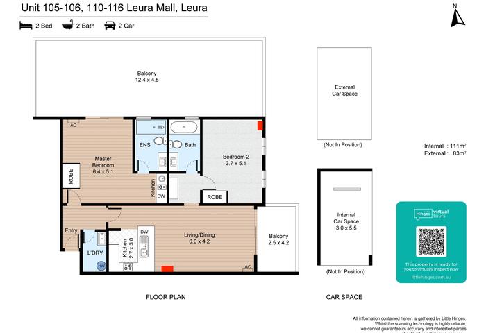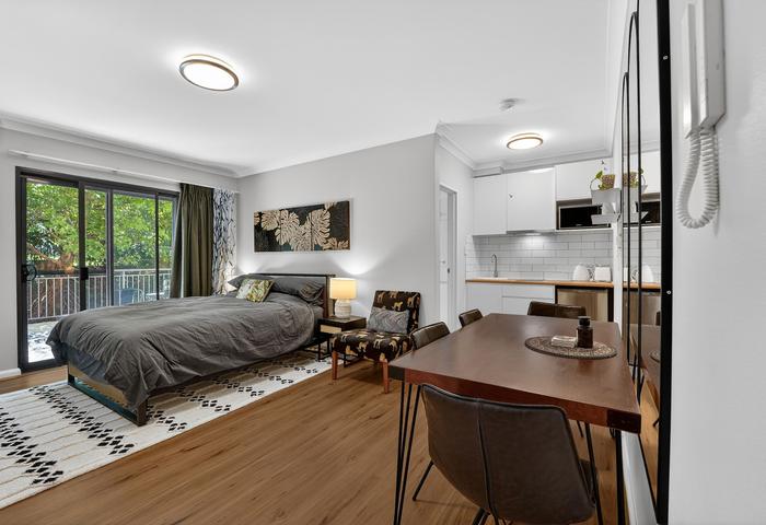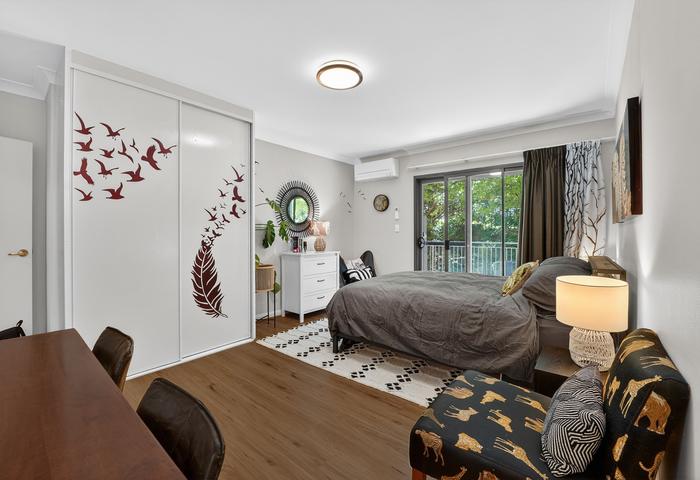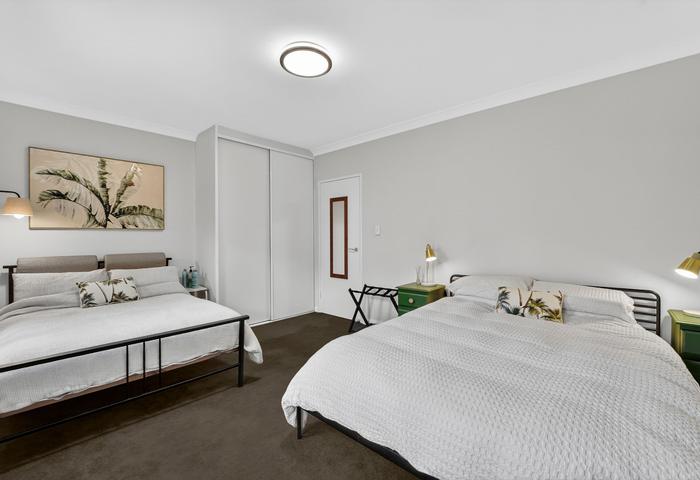 As the apartment is located on the ground floor, it is fully wheel-chair accessible. The space contains hybrid floorboards throughout and a carpeted main bedroom. The interior walls are of brick and concrete construction which maximises sound proofing between the two living spaces. All windows and sliding doors are double glazed for extra insulation. You or your guests have the security of locked-up undercover parking and ample more in the large visitor carpark.