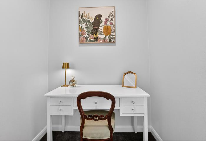 - Study nook with table and chair.