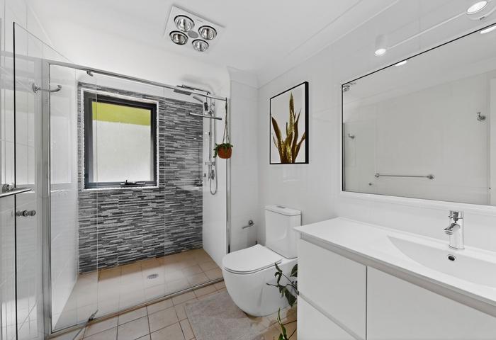 - Modern bathrooms: Rock feature wall rain shower in Studio and bathtub next door. Heater lamps, back to wall rimless toilet suites and classic white vanities.