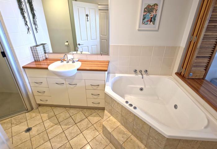•	2 modern bathrooms (spa + full shower ensuite + bath and shower in main)