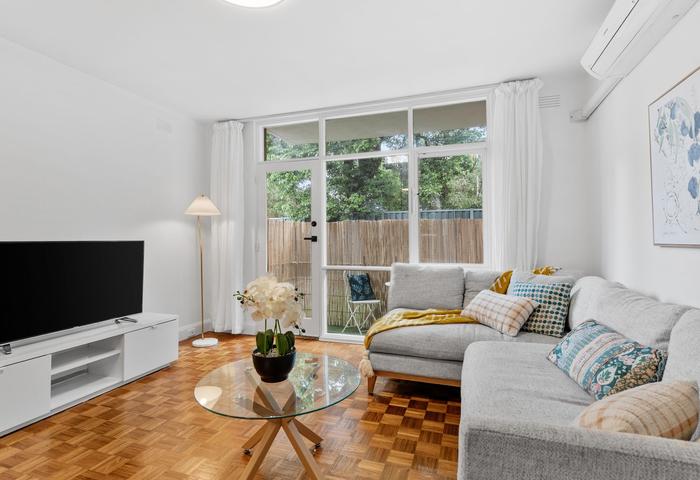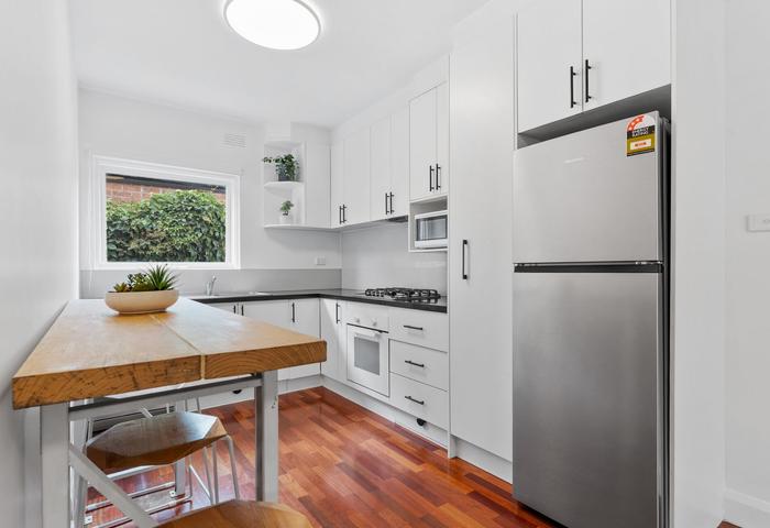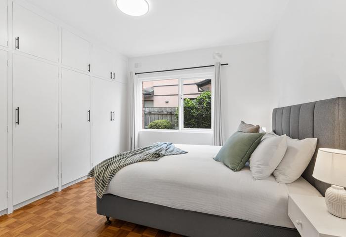 This large 2 bedroom apartment delivers the rare combination of enduring, solid brick construction with a pristine, modern presentation. It is ready for you to move in immediately and make your home, or to achieve maximum tenant appeal. The robust double-brick façade provides superior peace and quiet, while the classic parquet timber flooring maintains a premium aesthetic foundation throughout.