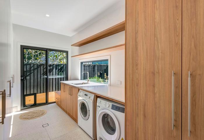 - An abundance of storage with an entire length of the garage fitted out with storage cupboards and 5 floor-to-ceiling cupboards in the laundry