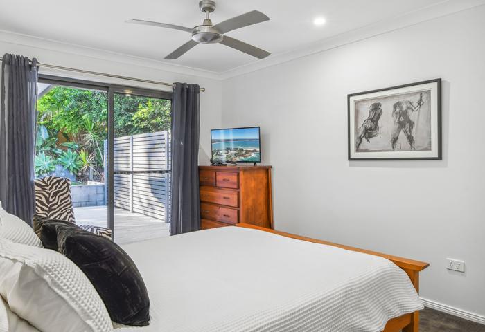Walking into the extensively renovated home you will immediately be drawn to the inspiring vista, a canvas of nature before your eyes. The open plan living extends onto a large deck with spectacular views over Trial Bay, Saltwater Lagoon, Yarrahapinni and the Carrai. The perfect place to enjoy your morning coffee or sundowner cocktails.