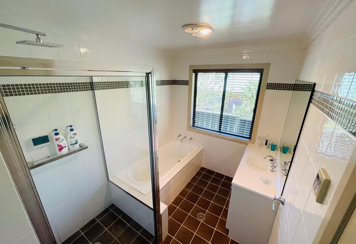 The property features three generously sized bedrooms, each designed with comfort in mind. The master suite is a luxurious retreat, complete with both walk-in and built-in wardrobes, and a spacious ensuite with a shower booth, vanity, and heated toilet. The second and third bedrooms include built-in robes and soft carpeting, while the main bathroom offers both a bathtub and a shower, along with a vanity. Both bathrooms are tiled floor-to-ceiling. There is also a separate toilet with a heated seat for added convenience. The double garage with remote-controlled door provides secure parking and easy access.