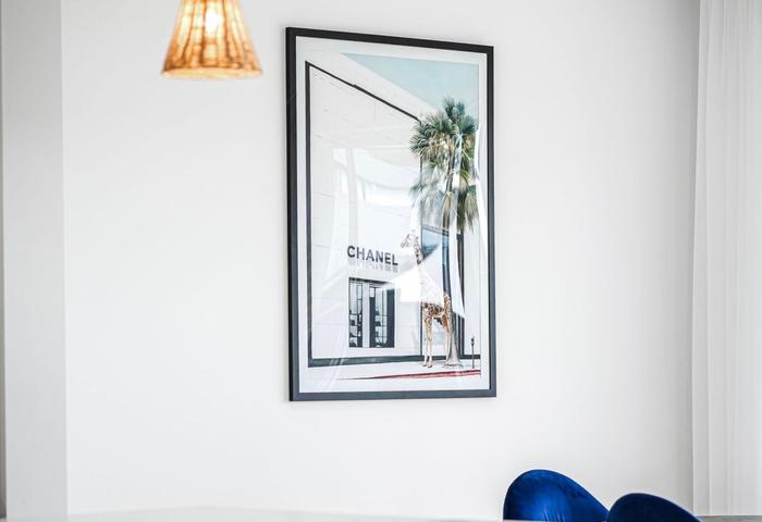 • Hybrid flooring and sheer curtains throughout