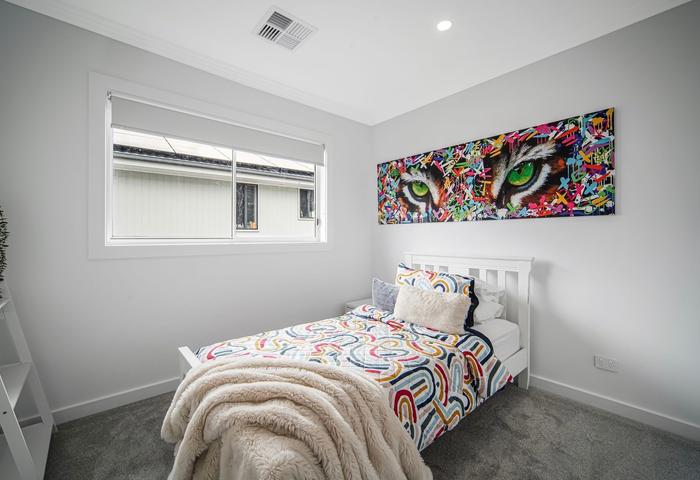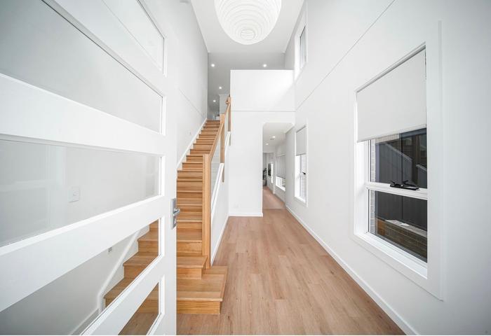 The home features stunning hybrid flooring, 3.043m ceilings on the ground floor, and 2.6m ceilings on the first floor. Actron ducted air conditioning and smart controls ensure year-round comfort.