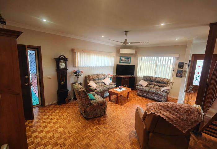 Featuring three spacious bedrooms with built-in robes, this home provides ample space for relaxation and privacy. The two modern bathrooms ensure convenience for the whole family. With two generous living areas, you'll have plenty of room to entertain guests or unwind after a long day.