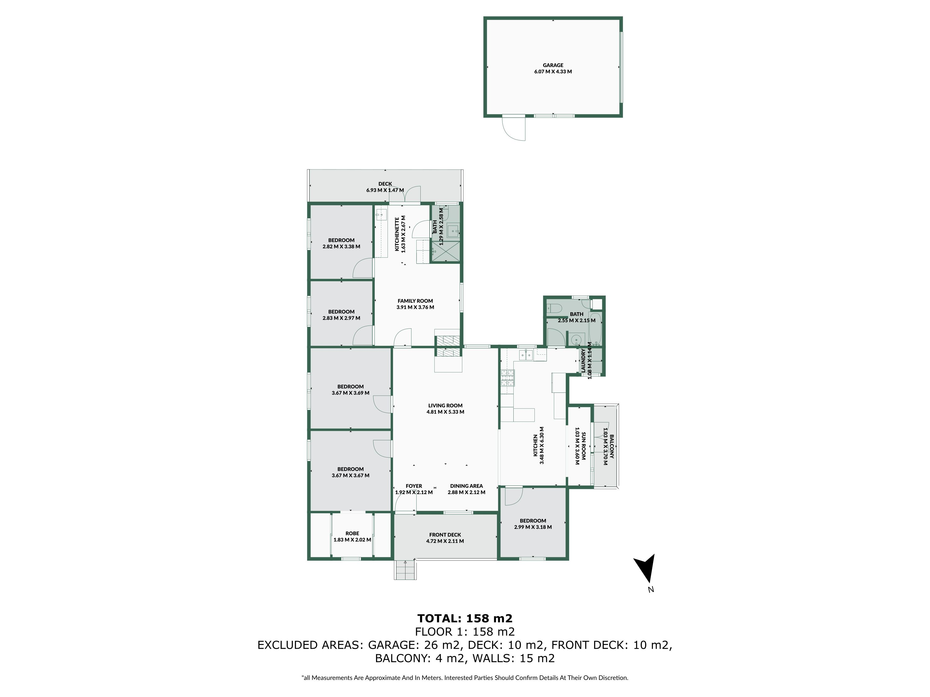 - 3 covered decks overlooking the front, rear and side gardens,