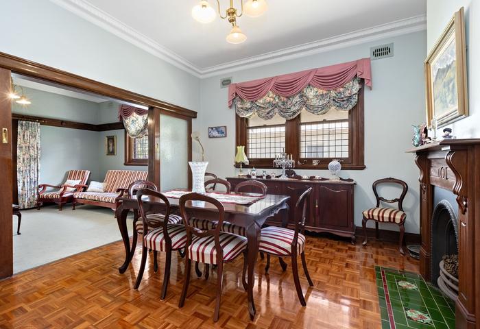Featuring three bedrooms and two bathrooms, leadlight windows and doors, decorative hight ceilings and open fireplace reflect the 1936 build date.