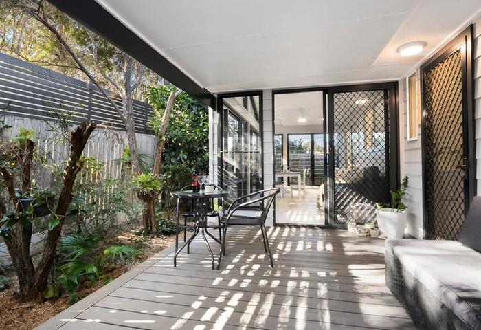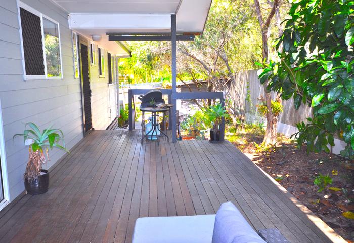 Set back from the street on a private block, the home is surrounded by mature trees and established gardens that frame a secluded rear deck. This tranquil outdoor space captures the ocean breeze and provides the perfect spot to unwind after a day at the beach.