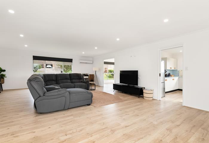 Inside the home, features four spacious light-filled bedrooms, each complete with built-in wardrobes, three renovated bathrooms, providing ample space for family and guests. The three bathrooms ensure convenience and privacy for all occupants. The home features two inviting living areas, ideal for relaxation or entertaining loved ones, complemented by beautiful floorboards that add warmth and elegance throughout.