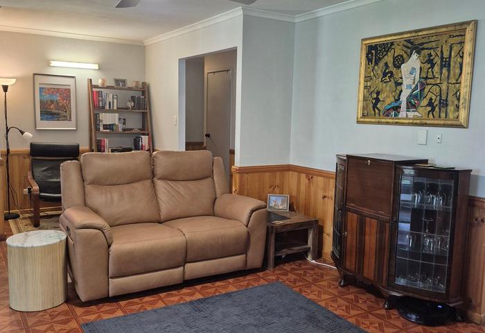 • Air conditioned wood-lined rumpus with concertina doors for privacy from the lounge, with large picture window, built-in desk and cabinetry, and own front entrance - perfect for a home business, office, children's retreat or 4th bedroom