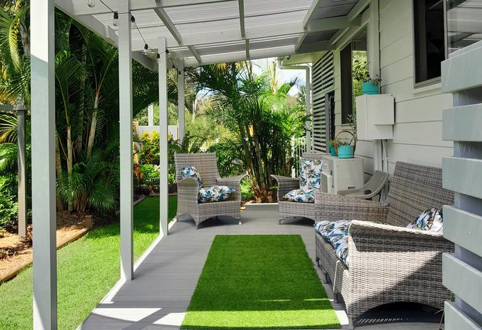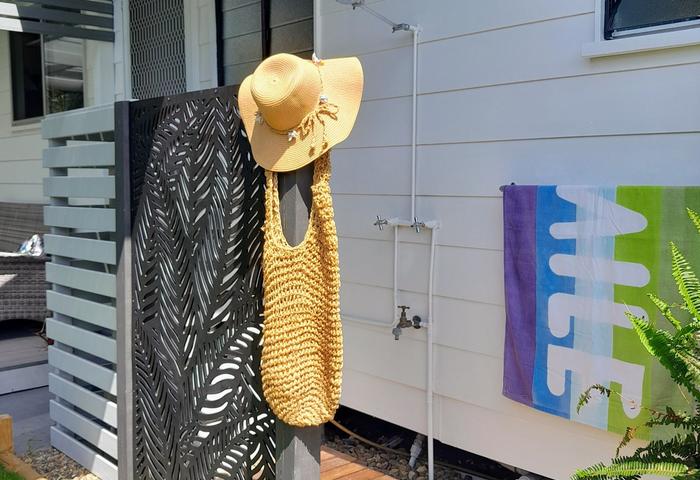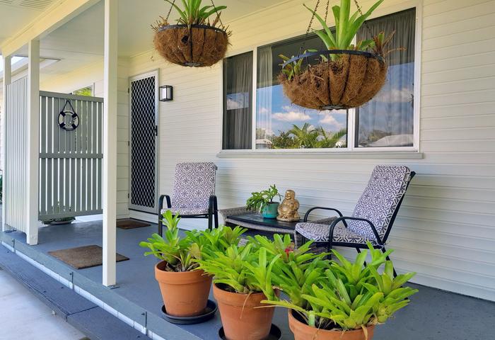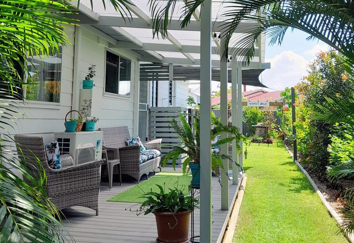 Additional features include lush tropical low-maintenance gardens providing shade and privacy for entertaining or a peaceful coastal lifestyle. An outside hot shower and bore water. A large professionally installed shade sail over the concreted drive way to protect, shade and accommodate two large vehicles. A two part lockable garage perfect for a workshop.