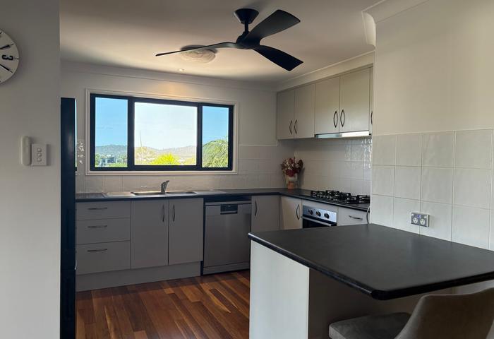 • Open plan kitchen with scenic views over the Calliope Conservation Park ranges/mountains. New oven and range hood. Gas stove top