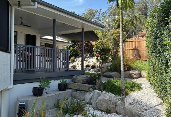 • Relax on the verandah, covered by the new commercially installed shade sail