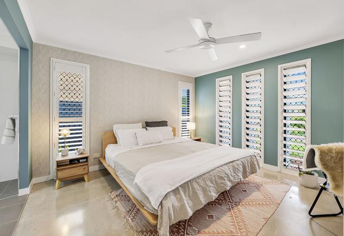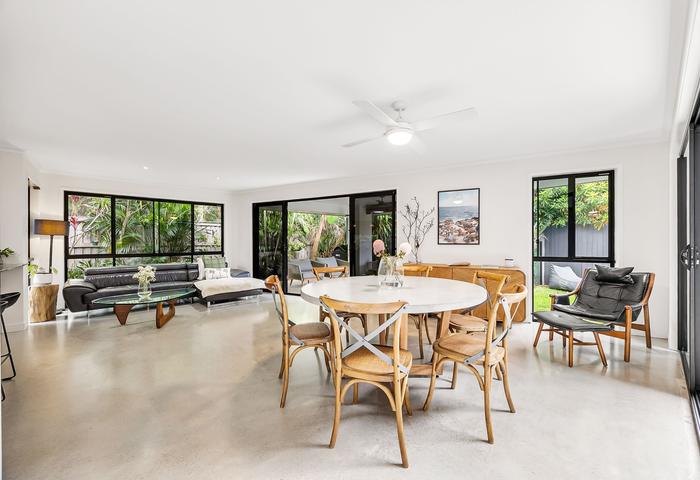 - Open-plan light filled living and dining area with polished concrete floors and through breezes throughout the house