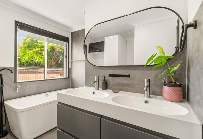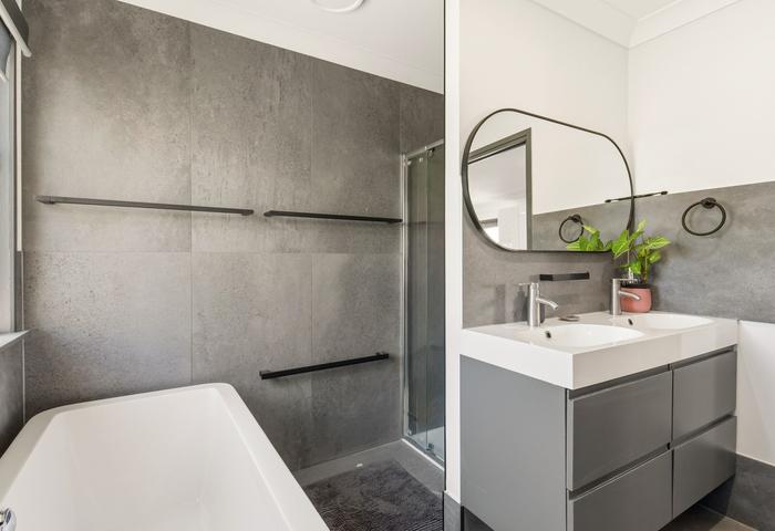 The main bathroom is a slice of luxury, featuring a double vanity with plenty if storage, deep soaking tub and seperate shower, full length mirror and a linen cupboard.