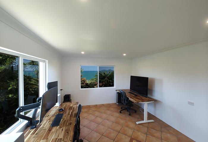 The first residence is a concrete core-filled brick home featuring three bedrooms, two bathrooms (one ensuite) and two toilets. This home was fully renovated by the current owner and comes with a 26 kilo-watt roof solar system and 28 kilo-volt battery uninterruptible power system. Fast, low-latency broadband internet is available.