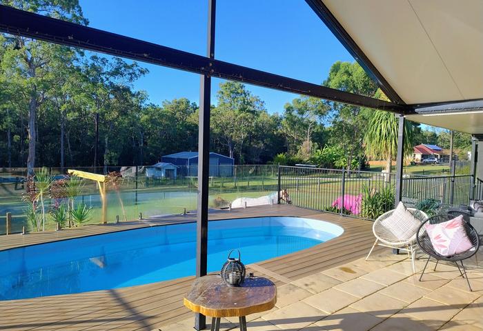Enjoy outdoor living at its finest with a large outdoor entertainment area with pull down block out blinds, a deck overlooking the property from the pool and an inviting outside undercover spa, ideal for relaxing or hosting friends all year round. The property also offers a fully fenced yard, a huge 14x7m shed for storage or hobbies with a toilet for the mancave. The property has a large concrete water tank with trickle feed and a grey water system to promote eco-friendly living.