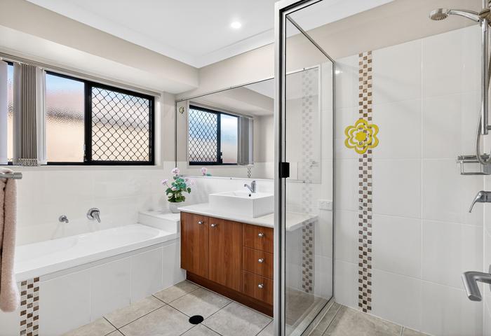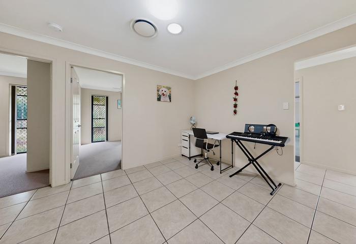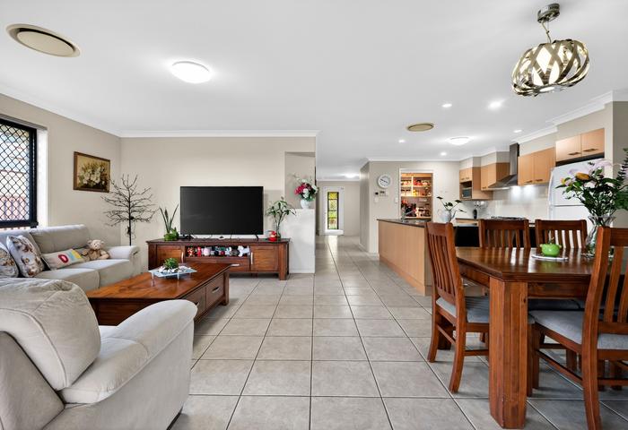 This low-set house is within walking distance to four childcare centres (350m–900m), Griffin State School (650m), a medical centre (260m), shops (450m), a park (190m), sports complex (900m), bus stop (94m), and the under-construction Freshwater Village. Murrumba Downs train station is 2.5km away, North Lakes Westfield is 3.9km away, and Bunnings and Costco are 9.7km away.