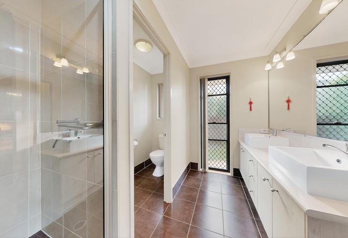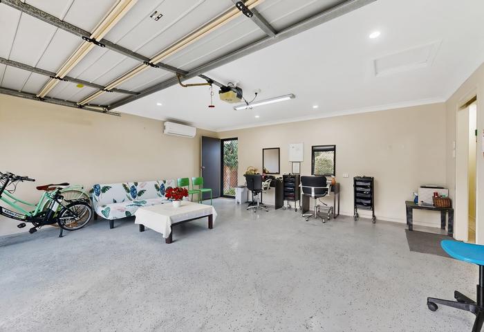 • Garage with security door, glass sliding door and motorised garage door, plus a separate split air-conditioner, allowing use as a home business space, entertainment room or children’s play area
