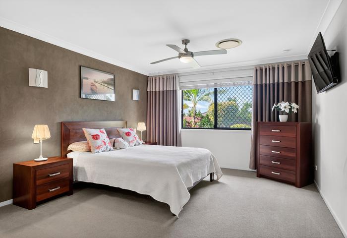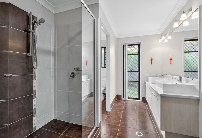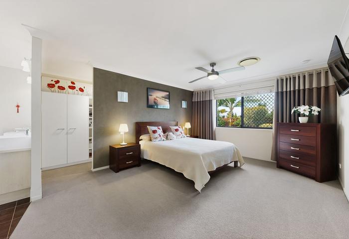 • Spacious master bedroom with en-suite featuring double shower, double vanity, walk-in robe and wall-mounted smart TV