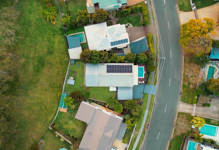 The property is equipped with numerous contemporary features such as split-system air conditioning, ceiling fans throughout, a gymnasium room, high-speed NBN, solar panels for energy efficiency, a dishwasher, built-in robes, floorboards throughout for a warm aesthetic, a water tank for sustainable living, a double garage with remote control access, two sheds, a large yard space to the rear/side, and additional secure parking with a remote controlled gate.