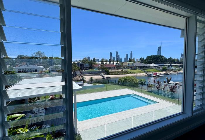Enjoy seamless indoor-outdoor living with under over entertaining area and a gorgeous deck beside the inviting inground pool, and a large outdoor entertainment area perfect for a fire pit gathering or hosting family gatherings. The thoughtfully designed courtyard adds to the resort-like ambiance, complemented by a balcony that overlooks the 28 meter water frontage, skyline views and lush surroundings