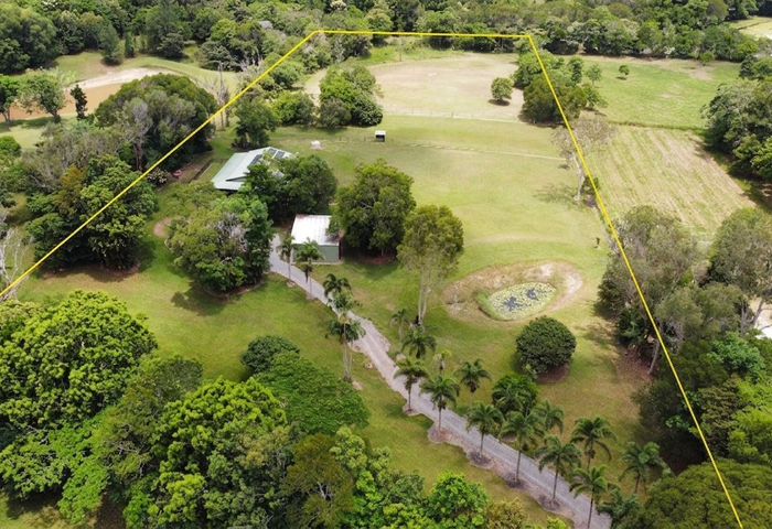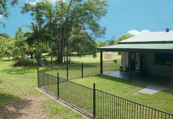 Set amidst the lush Port Douglas hinterland, this beautifully maintained steel-framed home offers the perfect balance of peaceful country living and modern convenience. Nestled on 6.3 acres of level, usable land, the property combines open green spaces, a well-established garden, and a paddock ideal for animals or just relaxing and soaking up the views.