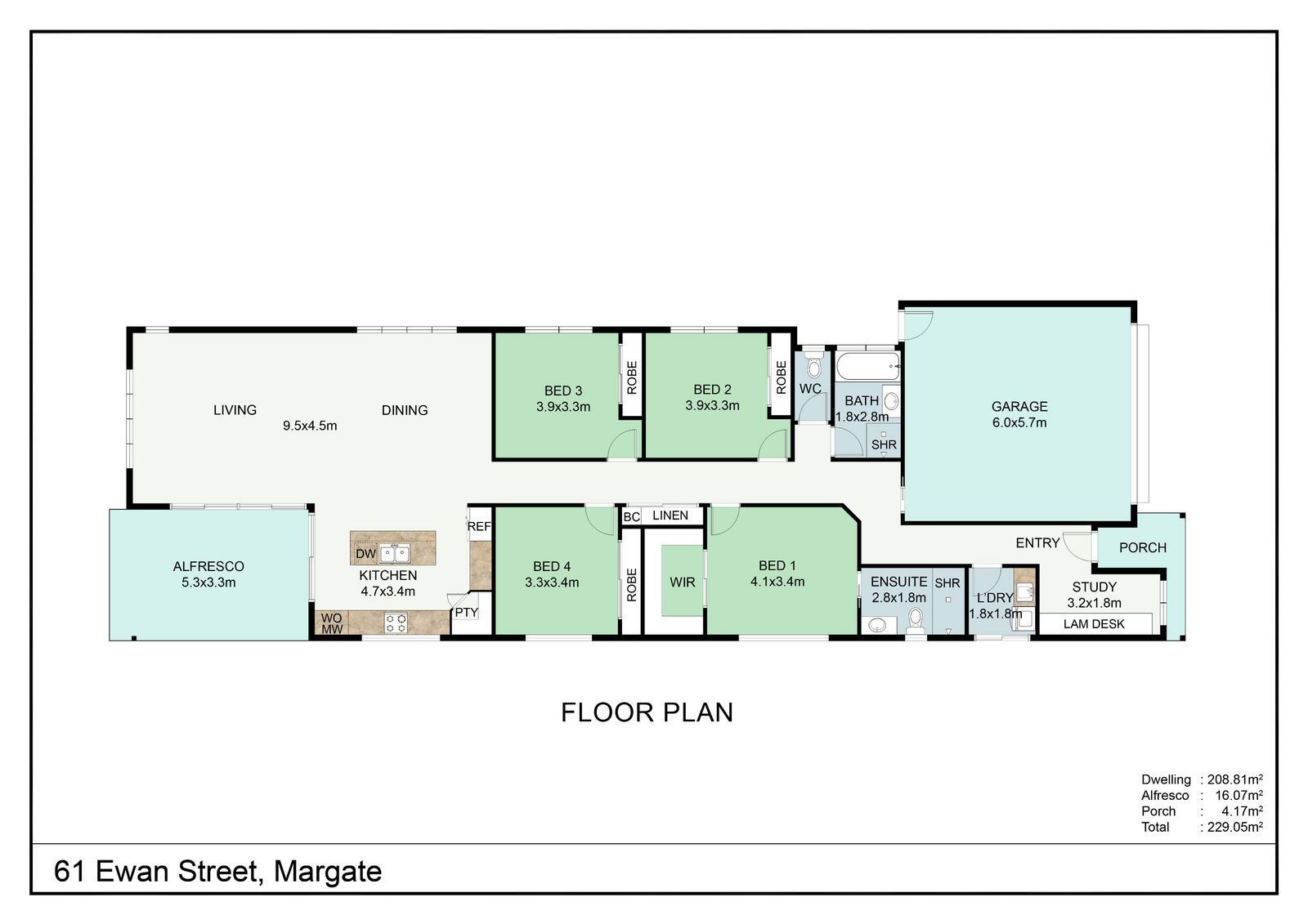 • Four bedrooms (large walk-in robe and ensuite to main; built-in to others)