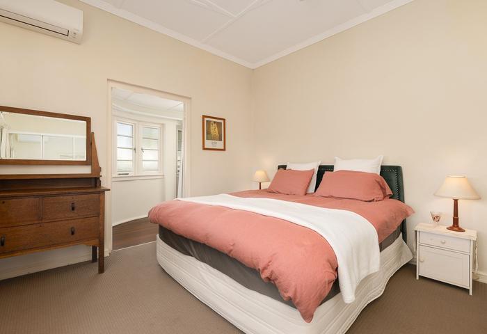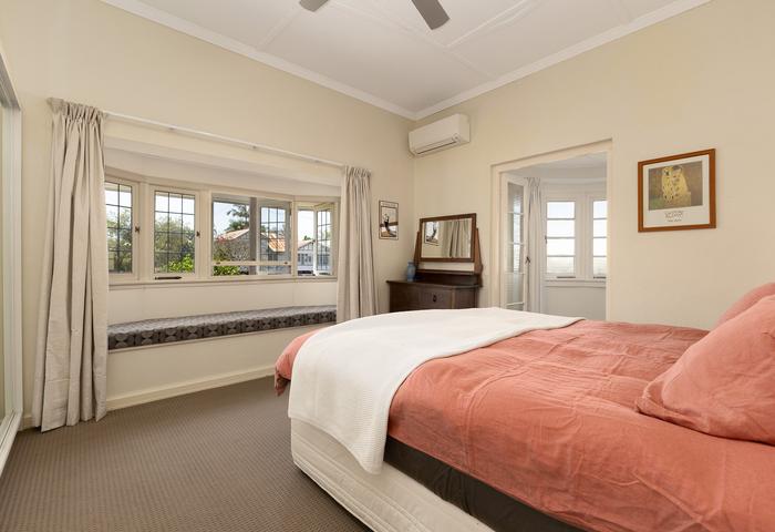 The main bedroom features a window seat feature, Daikin split system air conditioning with remote, reverse mode fan and easily accommodates a king size bed with room to spare.