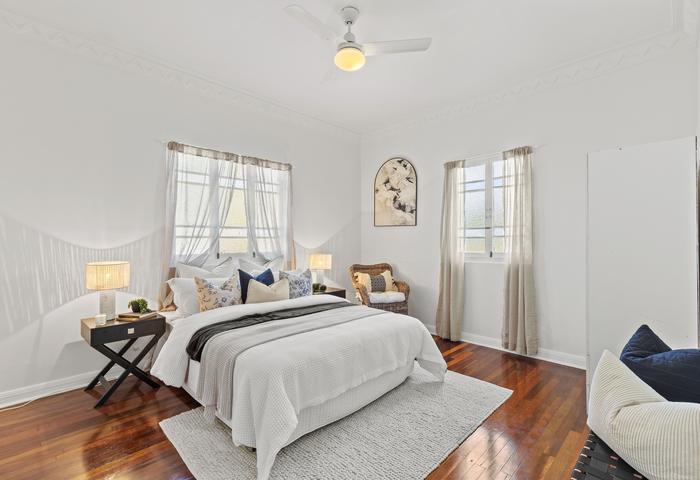 From the moment you step inside, the home feels calm, light-filled and effortlessly inviting. High ceilings, polished hardwood floors and soft natural tones create a sense of space and warmth, while large windows allow natural light to pour through each room.
