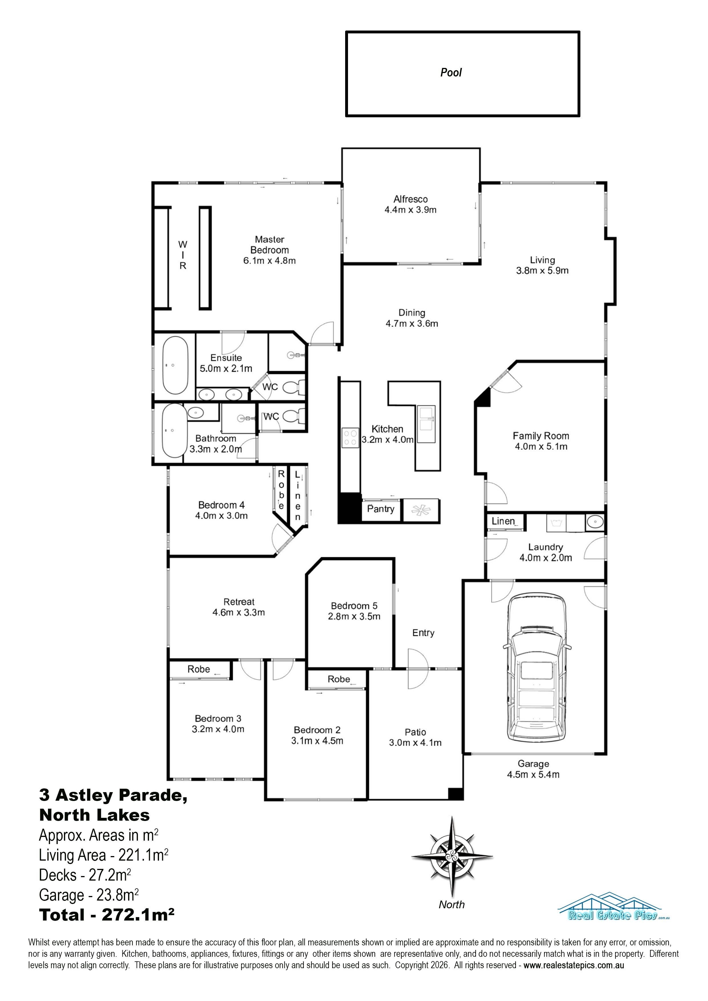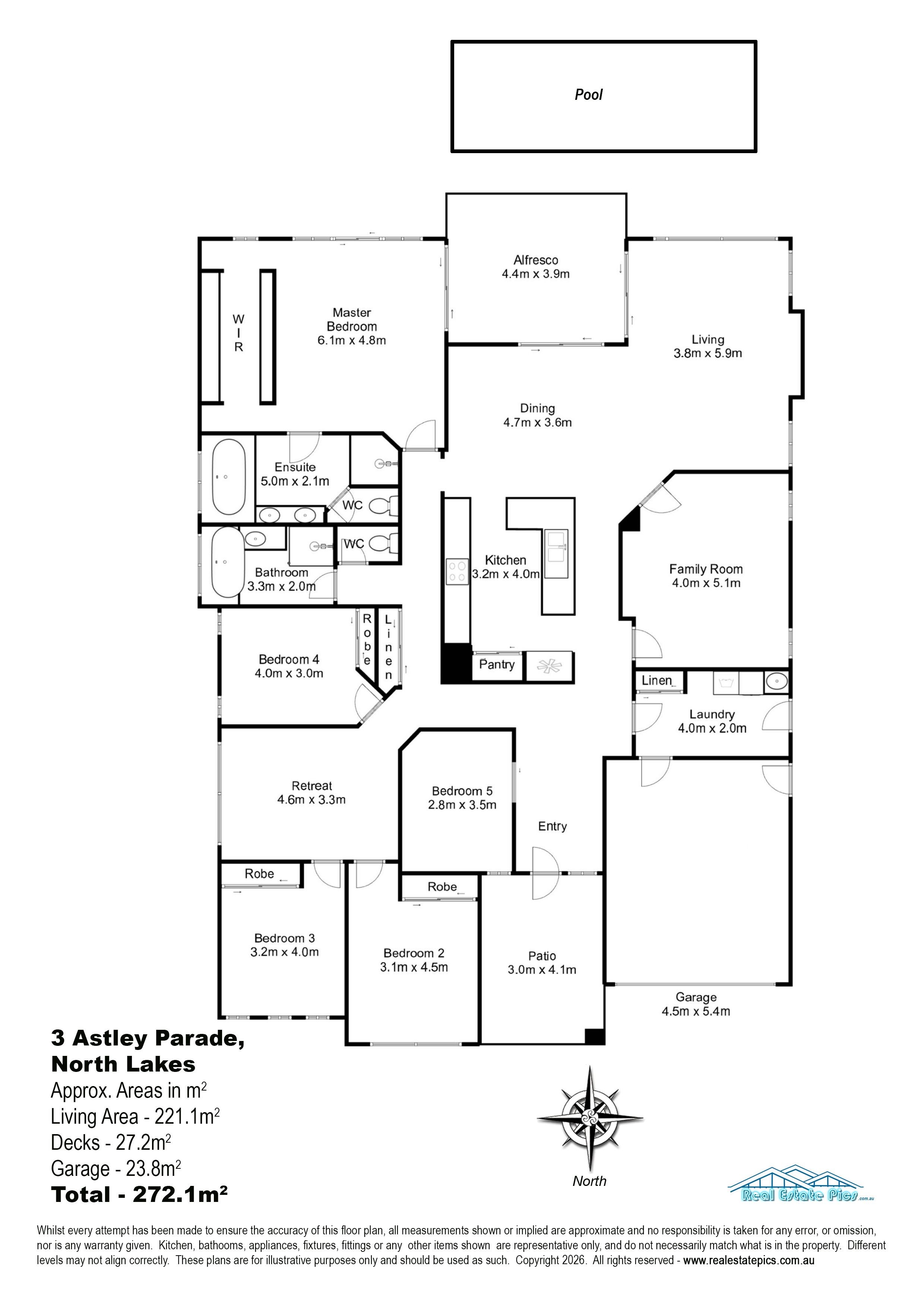 • Luxurious master suite with walk-through robe, ensuite and pool views