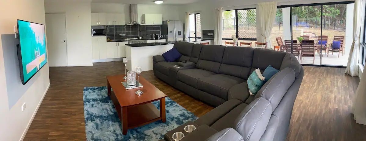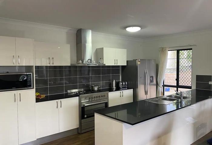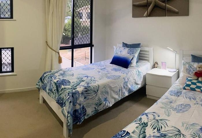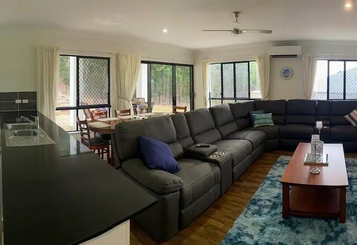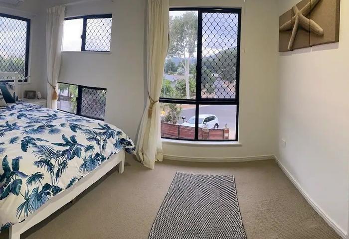 • Bedrooms 2 & 3: Queen beds, AC’s, fans, mirrored wardrobes, and unique outlooks — one to the lush rainforest, the other across to the ranges.