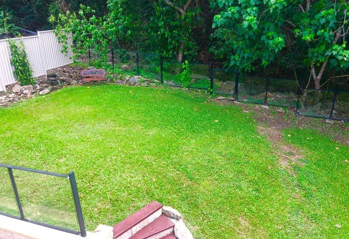 Beyond the master balcony, you’ll enjoy multiple entertaining zones: side and rear stone patios, a raised rear lawn with ocean glimpses, and a glass pool-style fence at the back that delivers uninterrupted rainforest views. Your own private slice of the paradise.