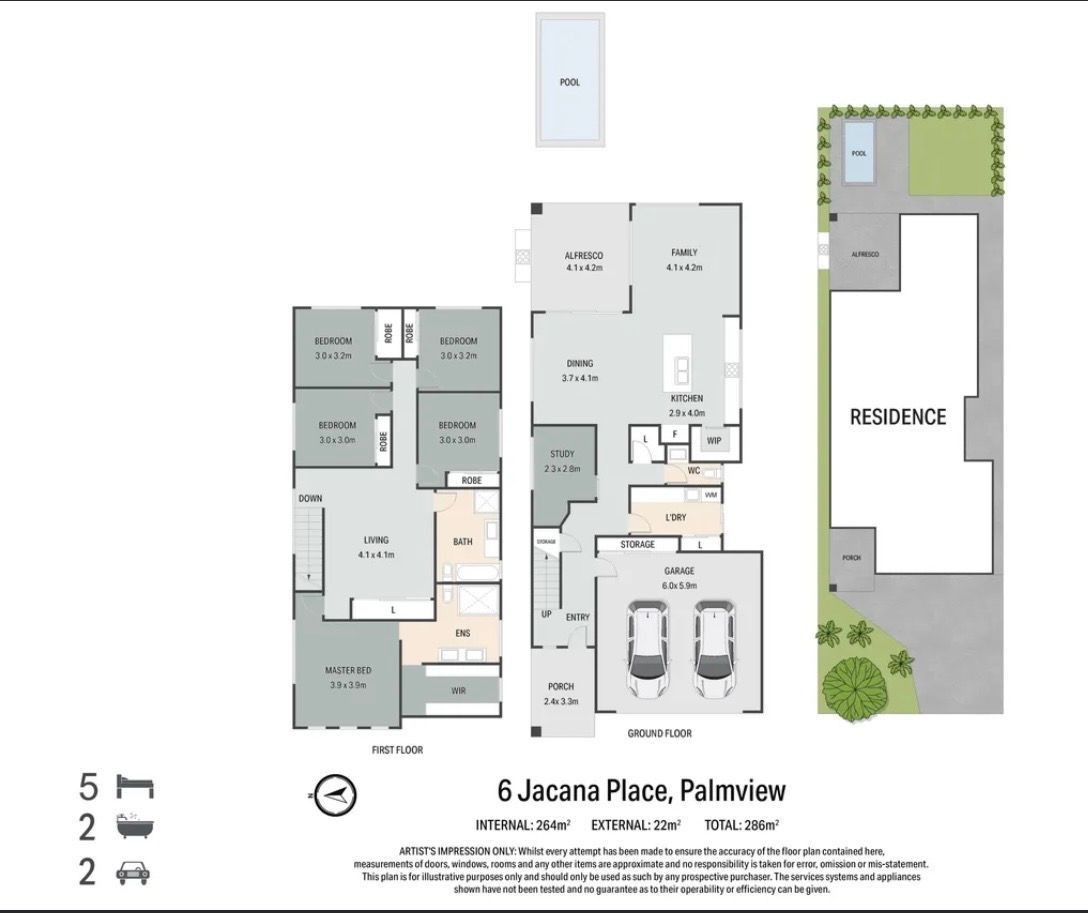 * Five oversized bedrooms, including a luxurious master suite with walk-in robe and large ensuite