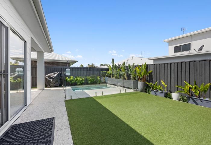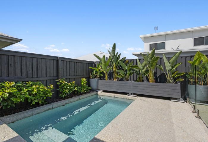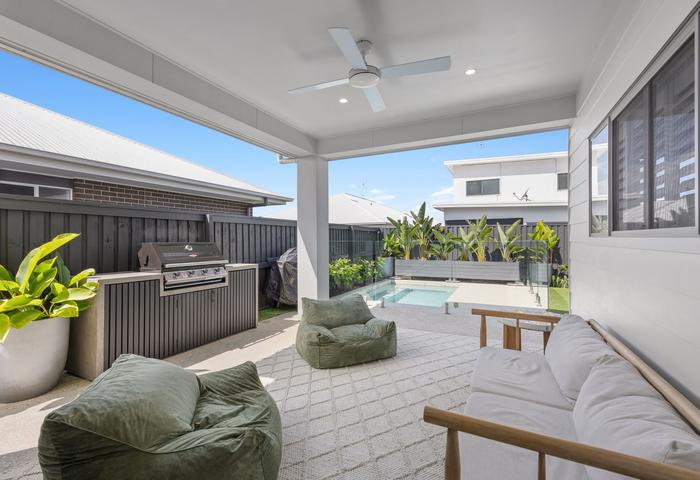Outdoors, enjoy year-round entertaining under the covered alfresco overlooking your private in-ground pool — the ultimate setting for relaxed Sunshine Coast living.
