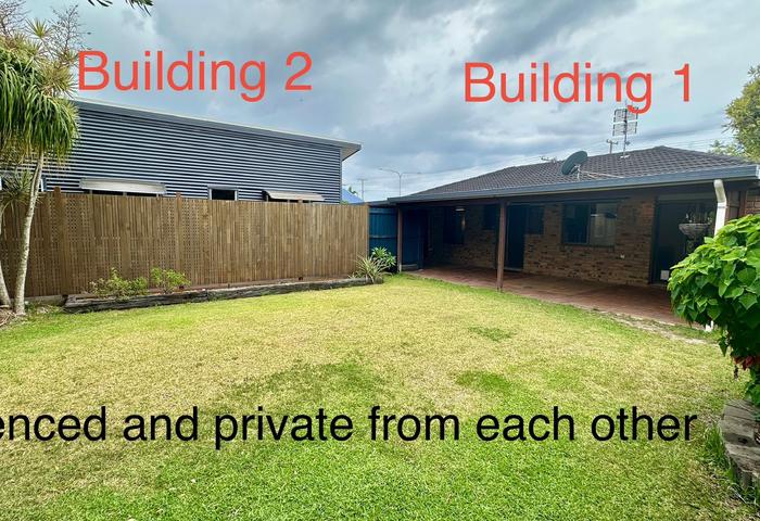 Both buildings are fully fenced, and separated, ensuring privacy, with separate power meters, individual outdoor areas and parking.