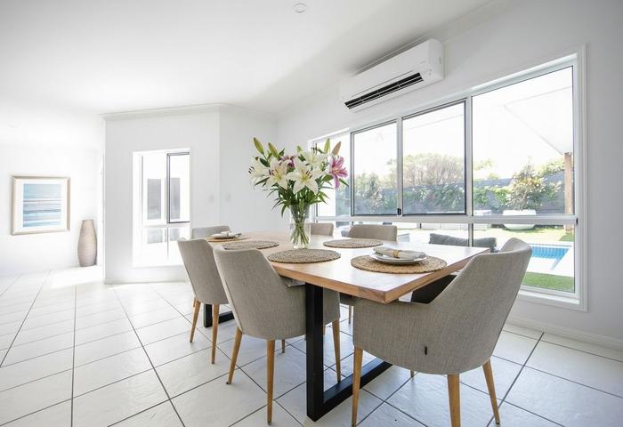 Year-round comfort comes from a new Fujitsu split-system, while an 8.1 kW premium REC solar system with Enphase microinverters has almost eliminated power bills, covering both the pool and air conditioning.