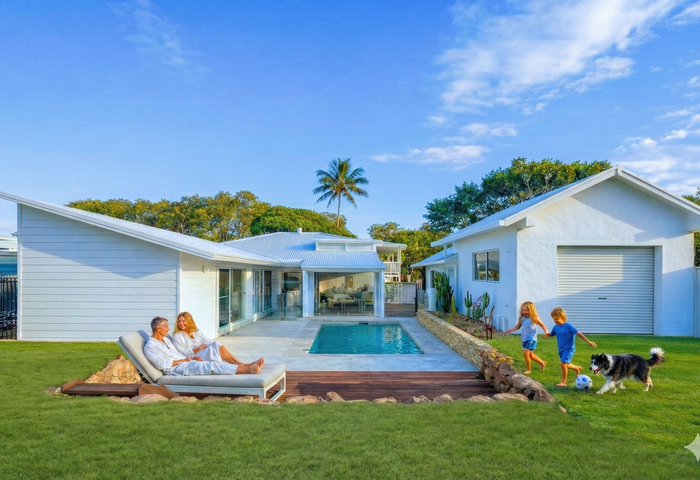 Finally, the kitchen, complete with butlers pantry, connects joins the retreat-style spaces to the main living and dining, overlooking the resort-style pool area, pool-house and gardens.