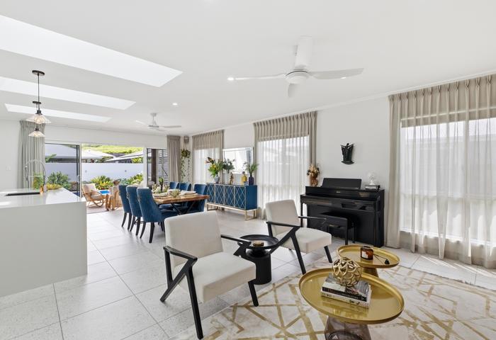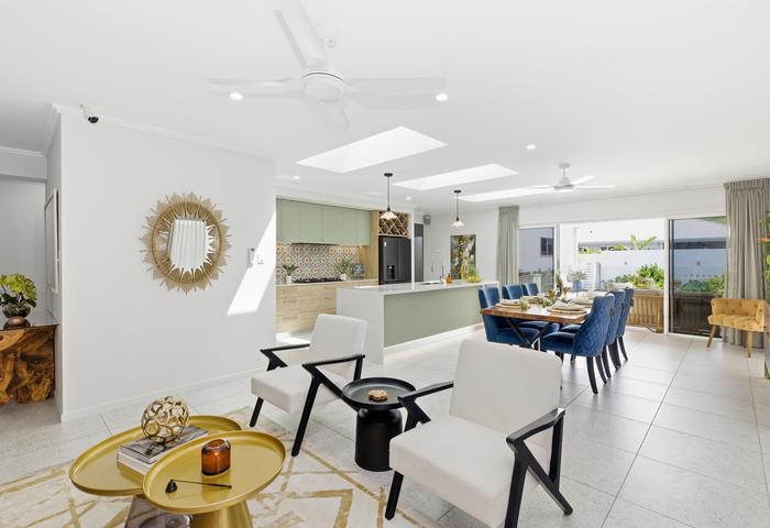 • Skylit open-plan living and seamless indoor-outdoor flow