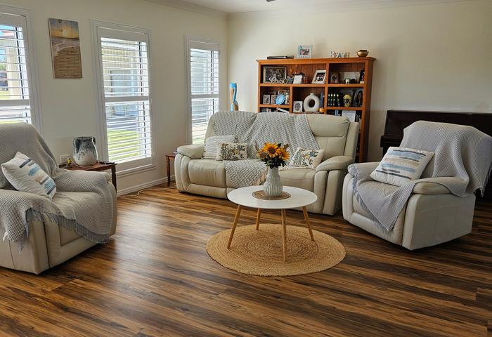 Plantation shutters to main bedroom, loungeroom and main bathroom