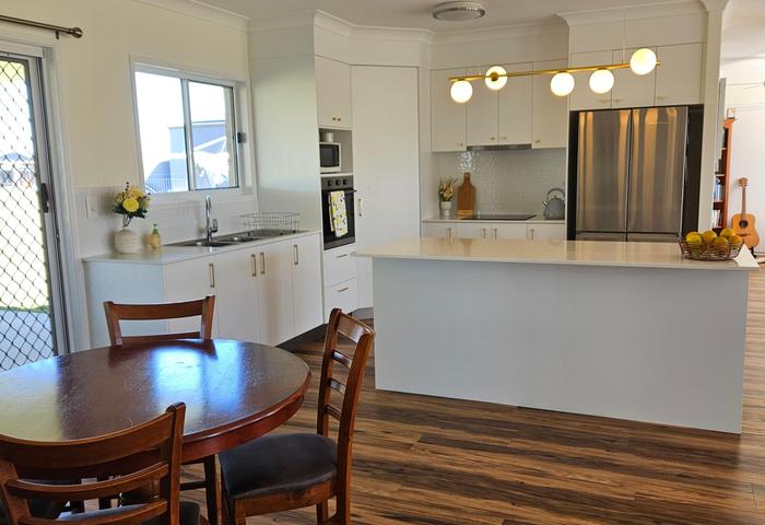 Dining area adjoining the kitchen with an open plan living, giving plenty of room for family meals and entertaining