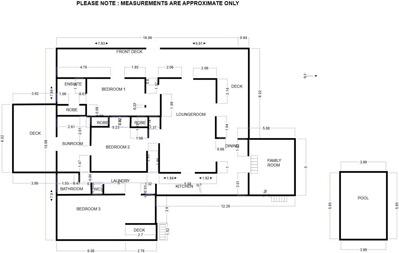 3rd Bedroom is oversized and beautifully styled in the coastal theme. Perfect for the extended family, teenager's retreat or guests. It features it's own access to a small deck overlooking the tranquil back garden and beautiful inground pool.
