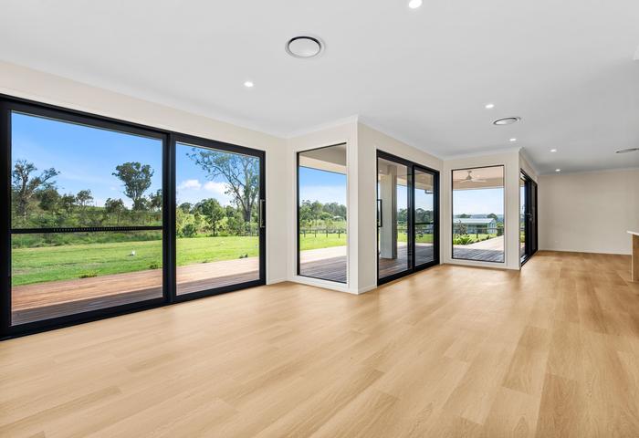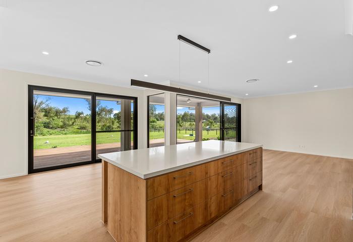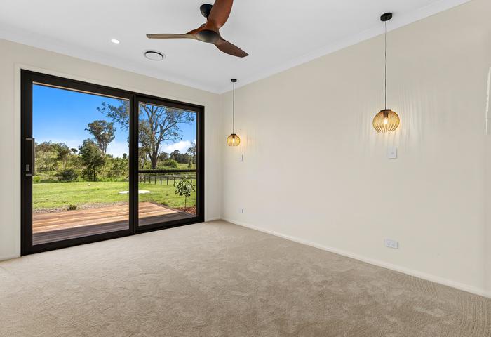 Perfect for year-round entertaining, the kitchen and main living areas open through wide sliders to a spectacular spotted-gum deck, offering effortless indoor–outdoor connection and a peaceful outlook across the rural surrounds.