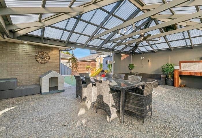 The property’s thoughtful features, such as the outdoor entertainment space and secure fencing, make it an excellent choice for families seeking both comfort and privacy.